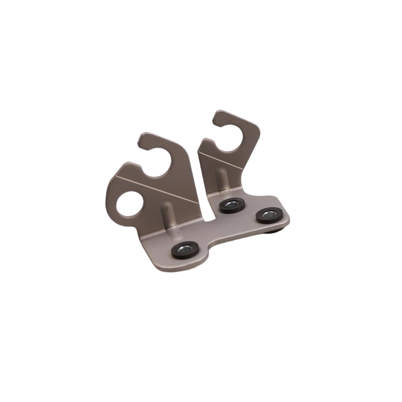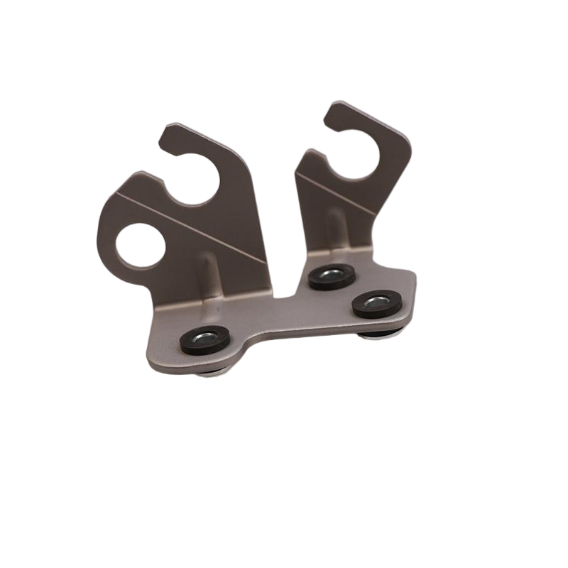 The cable bracket secures manual shift cables or parking brake cables, maintaining their routing, tension, and preventing excessive bending or interference.